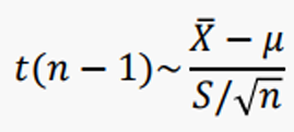X의 분포가 정규분포일 때, 표본평균의 분포에서 모집단의 표준편차를 모를 경우 모표준편차 대신 표본표준편차를 사용