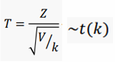Z ~ N(0, 1), V ~ χ2(k) 이고 Z와 V는 서로 독립일 때,