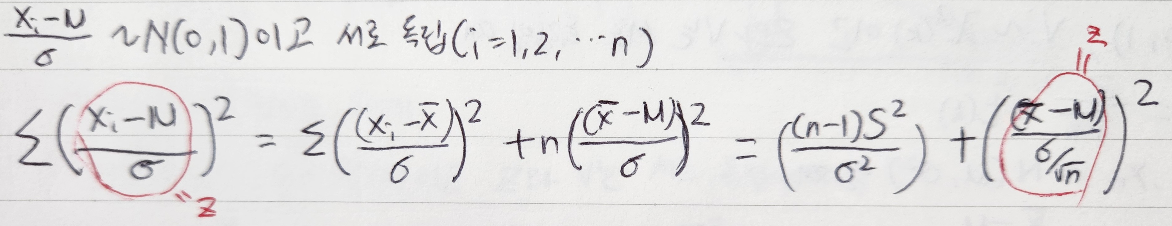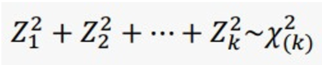 확률변수 Z1, ... , Zk가 각각 표준정규분포를 따르고 독립일 때 그들의 제곱합은 자유도 k인 카이제곱분포 χ2(k)를 따름