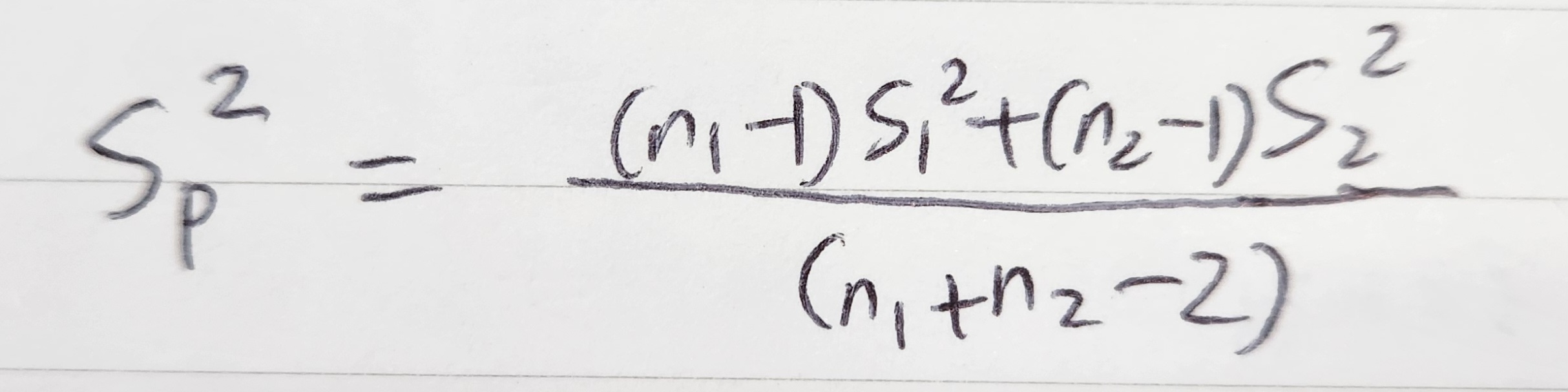 분산이 동일할 때 두 정규모집단의 표본평균의 비교를 할 때 통계량 구성