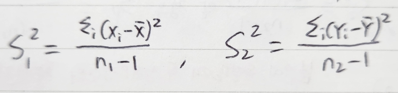 X1, ... , Xn과 Y1 , ... , Yn가 각각 N( μ1, σ² ), N( μ2, σ² )을 따르며 서로 독립인 확률표본이라 할 때, 표본분산은 각각
