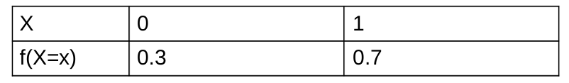 P( x̄ = 0.5) = P(X1 = 0, X2 = 1) + P(X1 = 1, X2 = 0) = (0.3 * 0.7) + (0.7 * 0.3) = 0.21 + 0.21 = 0.42