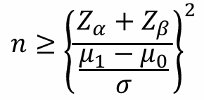 개인첨언 : 이 공식은 모수 μ에 대한 가설 검정을 수행할 때, 표본 크기 n을 결정하는 방법