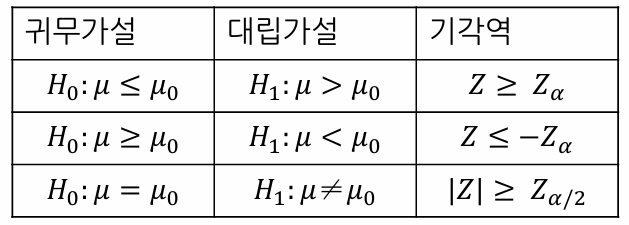 - 대립가설과 상반되는 가설로, 일반적인 사실을 귀무가설로 설정
