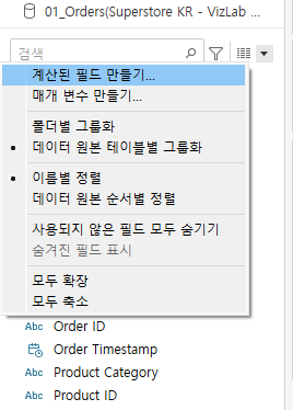 계산된 필드는 삼각형을 클릭하거나, 빈공간에서 우클릭해도 생성할 수 있다.