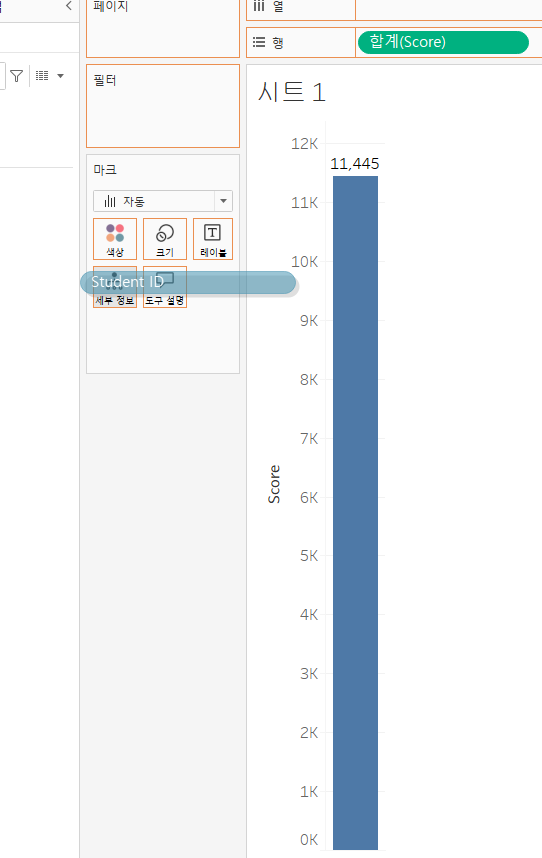 Student ID와 Score를 동시선택하고 표현방식에서 박스플롯을 선택