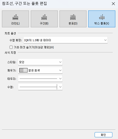 추가기능으로 박스 플롯을 우클릭하면 편집을 할 수 있다.