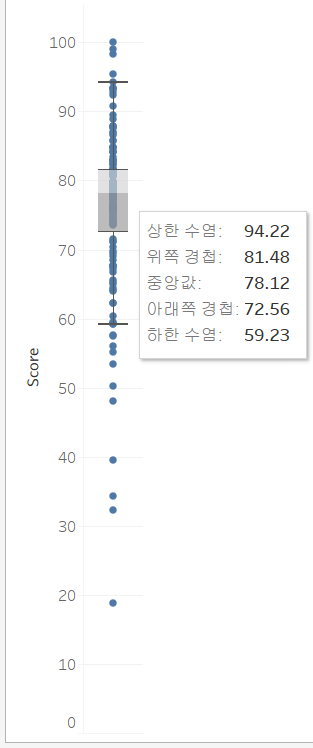 59.18점 ~ 94.86점의 범위 안에 들어오지 못한 점수는 아웃라이어인 것이다.