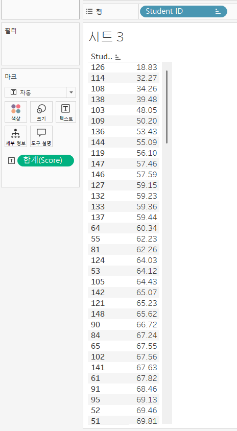 학생별 점수를 일렬로 세운 것을 확인할 수 있다.