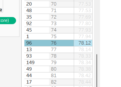 전체 151명 중에 76등은 96번 학생이고 Score는 78.12이다.