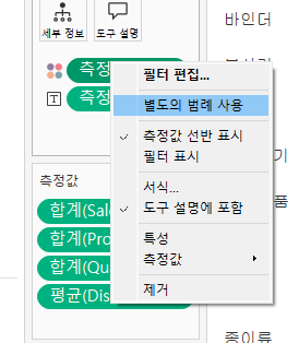 색상에 있는 측정값을 우클릭하여 별도의 범례 사용을 선택한다.
