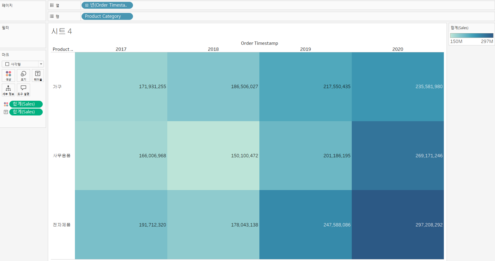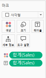Sales를 한 번 더 마크 색상에 드랍하고, 마크 모양을 사각형으로 바꿔준다.