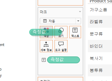 마크 텍스트에 들어있는 측정값을 ctrl + 클릭 하여 색상에 복사드랍 해준다.