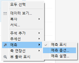 예측 라인 위에서 우클릭 -> 예측 -> 예측 옵션