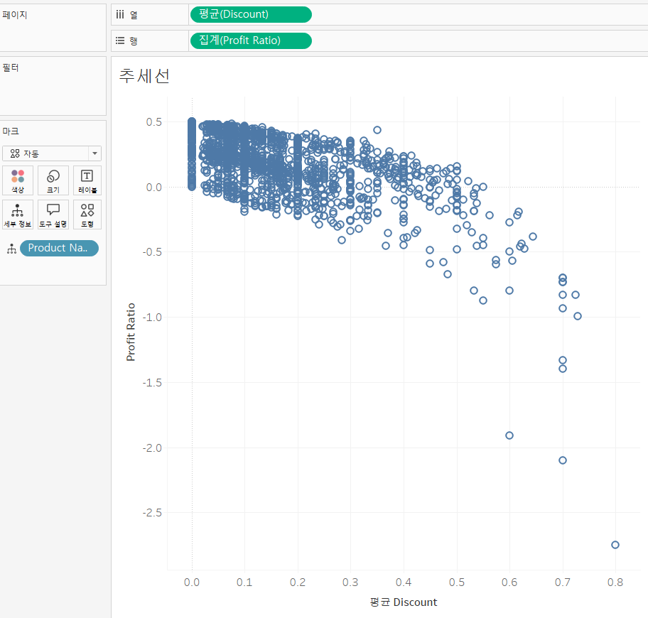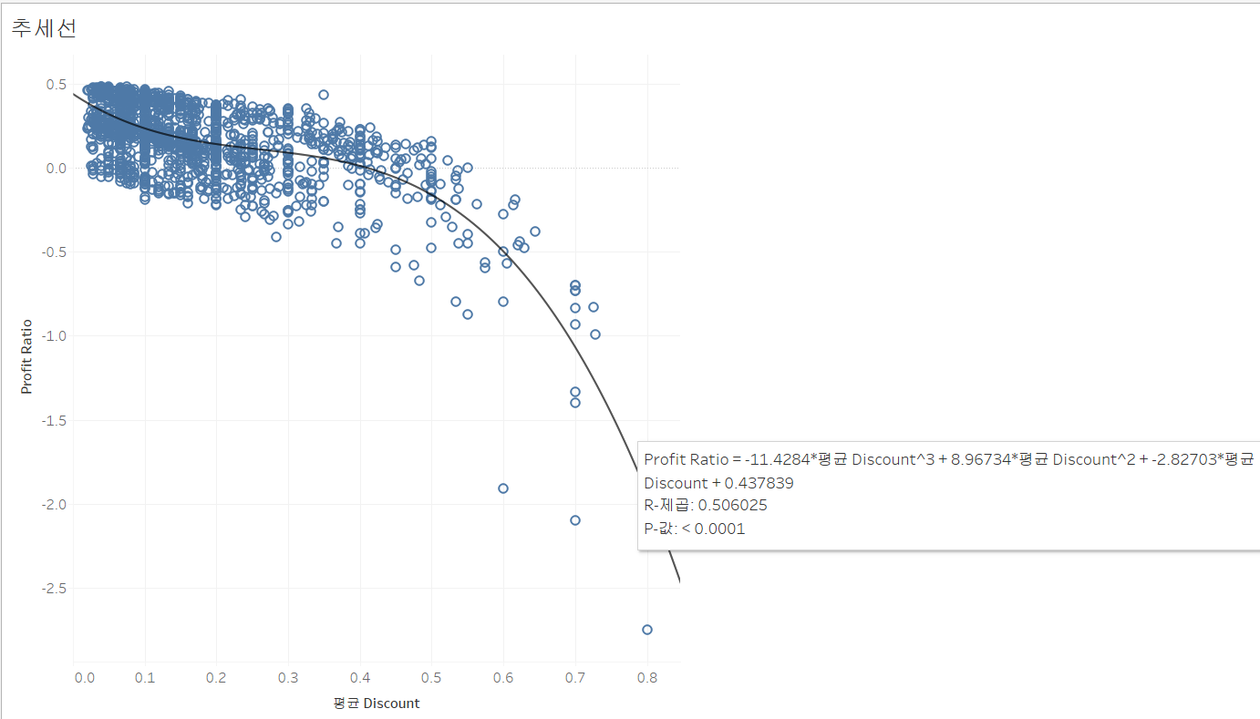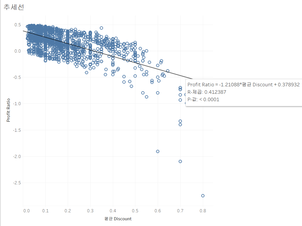 Discount와 Profit Ratio간의 상관관계가 수식으로 표현된다.