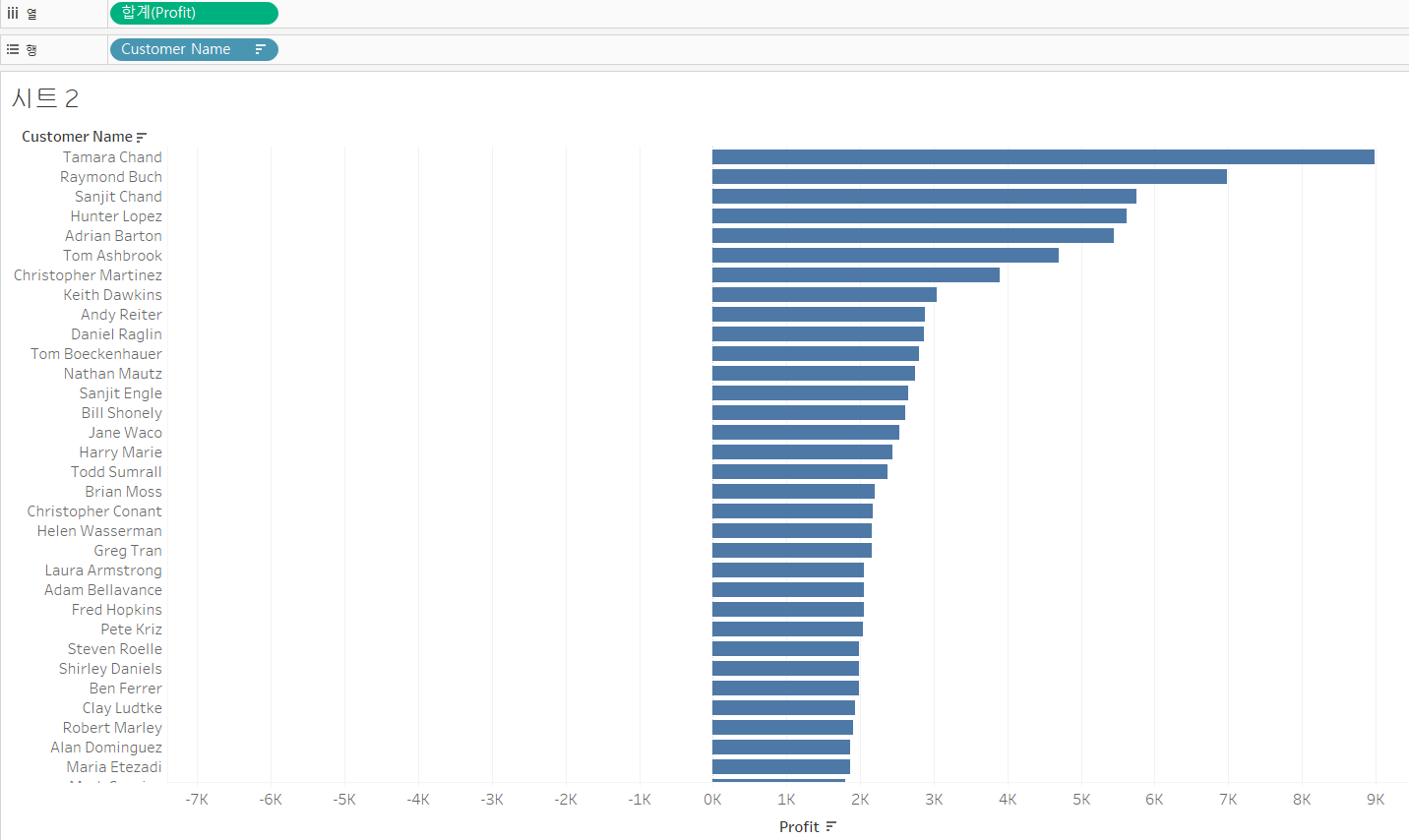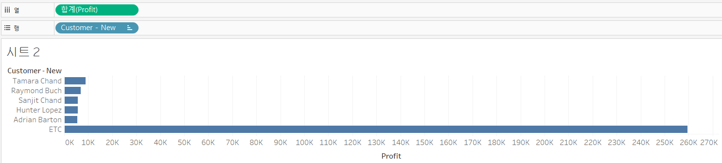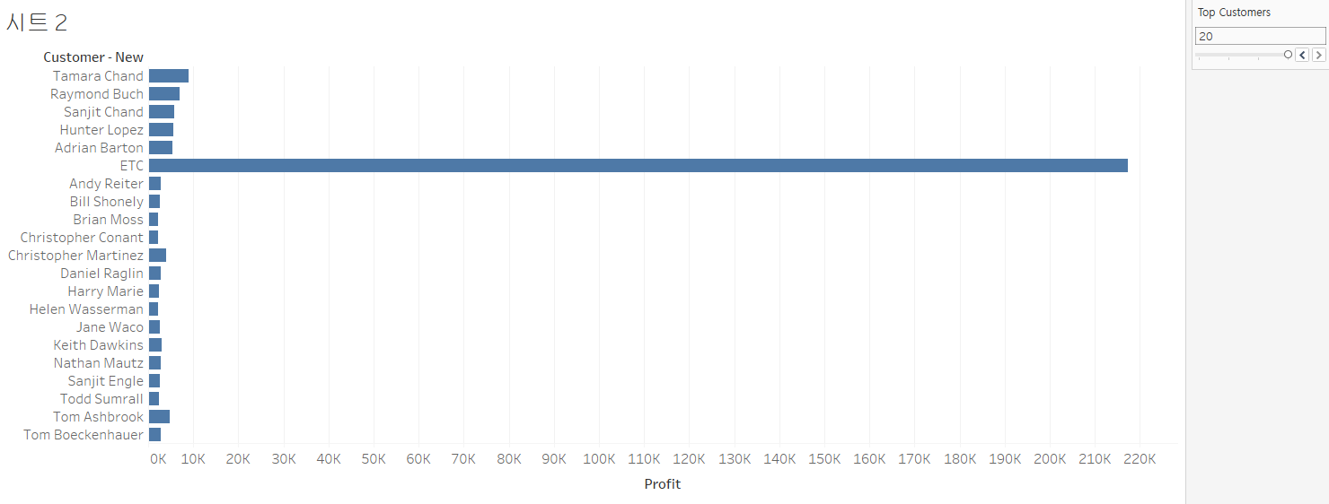 다섯 명의 고객명만 표시되고 있는 이유 : Top Customers의 매개변수가 5로 설정되어 있기 때문이다.