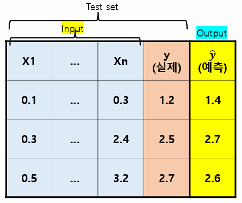 실제값(y)과 예측값(ŷ)의 차이를 계산하여 성능을 측정