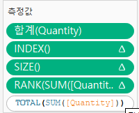 테이블 계산의 정의 중 하나가 Secondary Calculation인 것을 알 것이다. RANK라는 테이블 계산 안에는 먼저 First Level Calculation의 집계 계산이 들어가야 두번째로 테이블 계산이 일어나기 때문이다.
