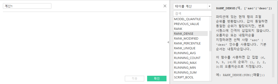 RANK([Aggregated Calc]) : Aggregated Calc에 따라 줄을 세운다(=순위를 매긴다)