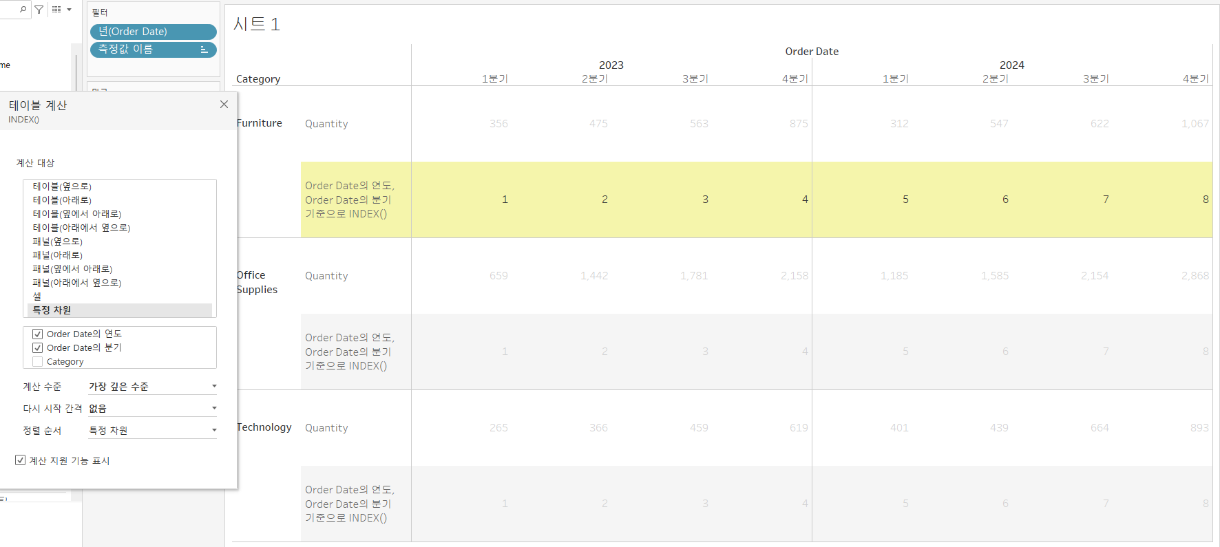 INDEX() 필드에서 테이블 계산을 열어보면,