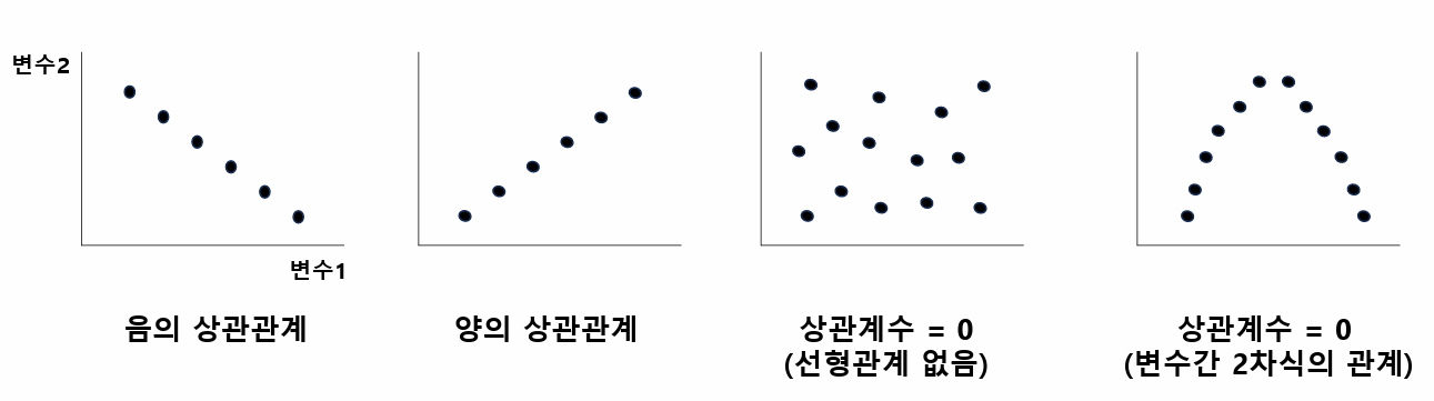 - "상관계수가 0이다"의 의미가 두 변수간에 관계가 없다(X) - 틀린 말