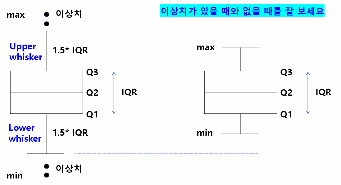 - 왜도, 사분위수, 상자그림, 평균, 중앙값, 최빈값과의 관계
