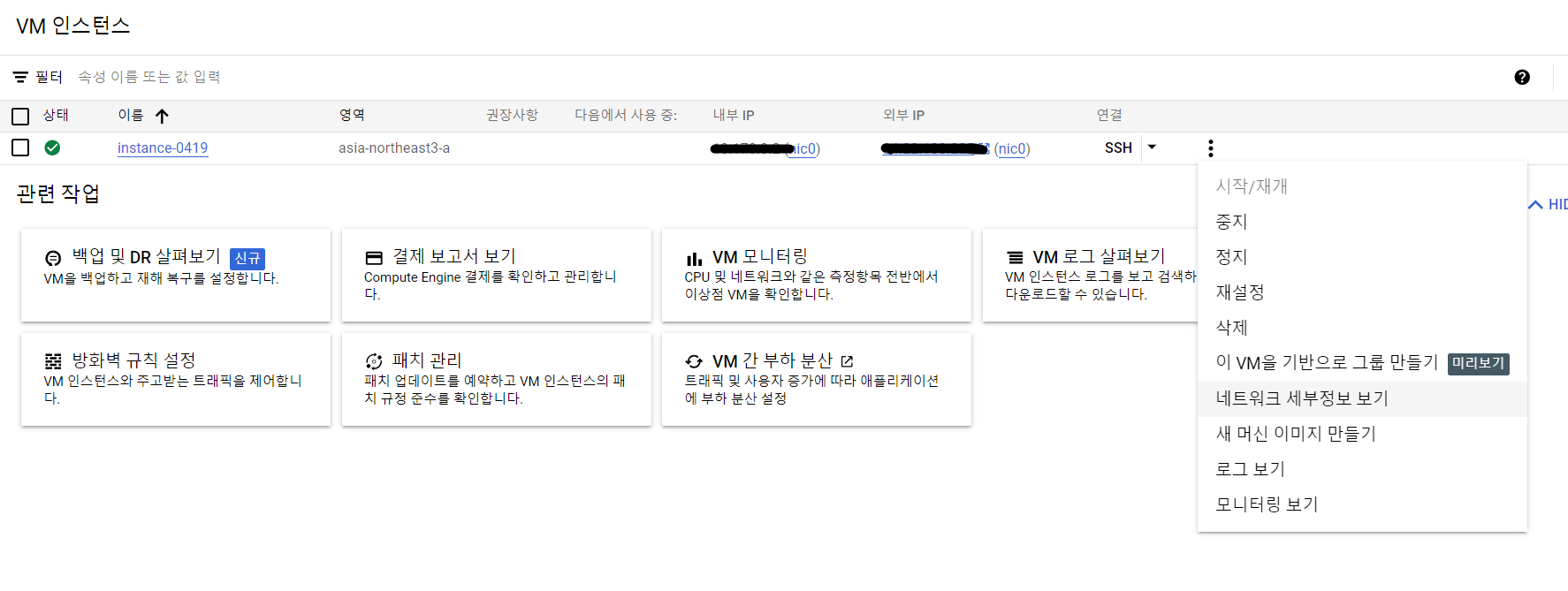 - 다시 Compute Engine -> VM인스턴스로 돌아간다.