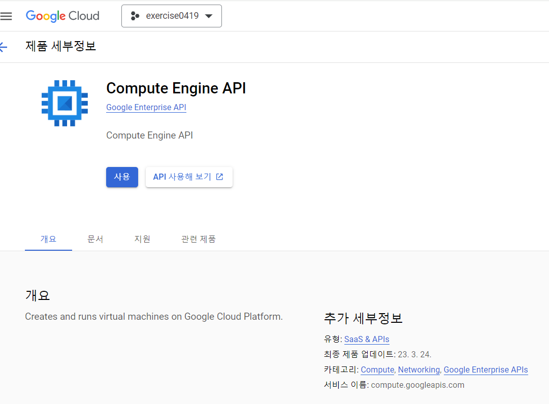 - Compute Engine API 사용하기를 클릭한다.