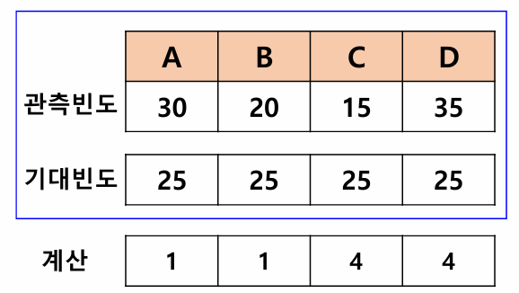 H0 : 상품 A, B, C, D가 동일한 비율로 들어있다