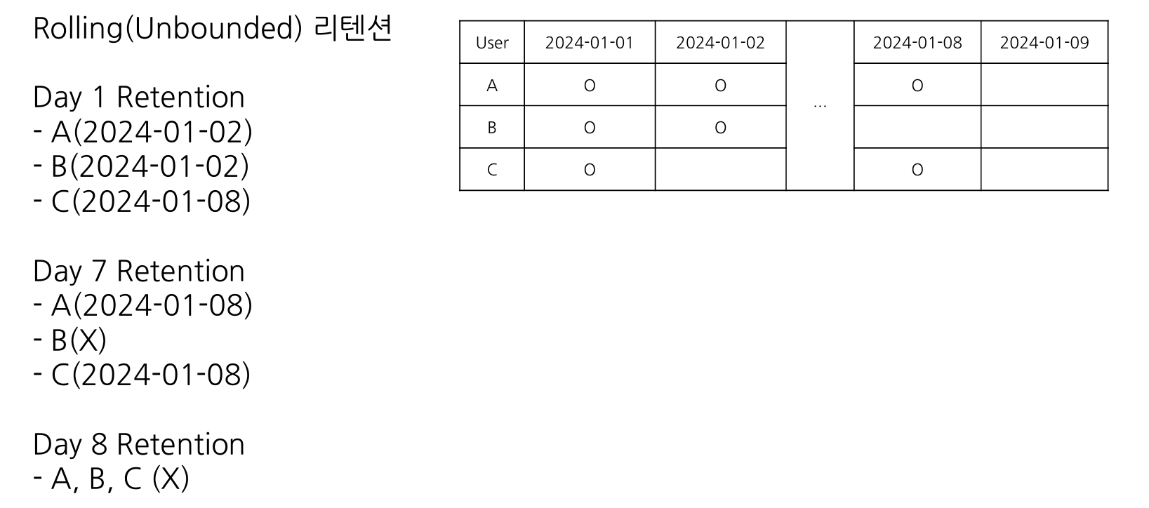 (3) Rolling 리텐션(Unbounded 리텐션)
